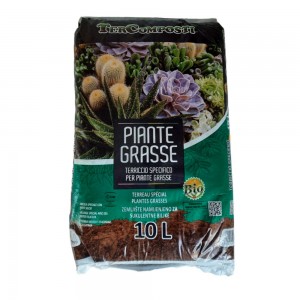 Piante Grasse Tercomposti Terriccio/substrato ideale per il rinvasi di piante grasse e succulente di alta qualità. Una miscela speciale con inerti silicei adatto alle esigenze di queste piente. Sacchetto da 10 lt